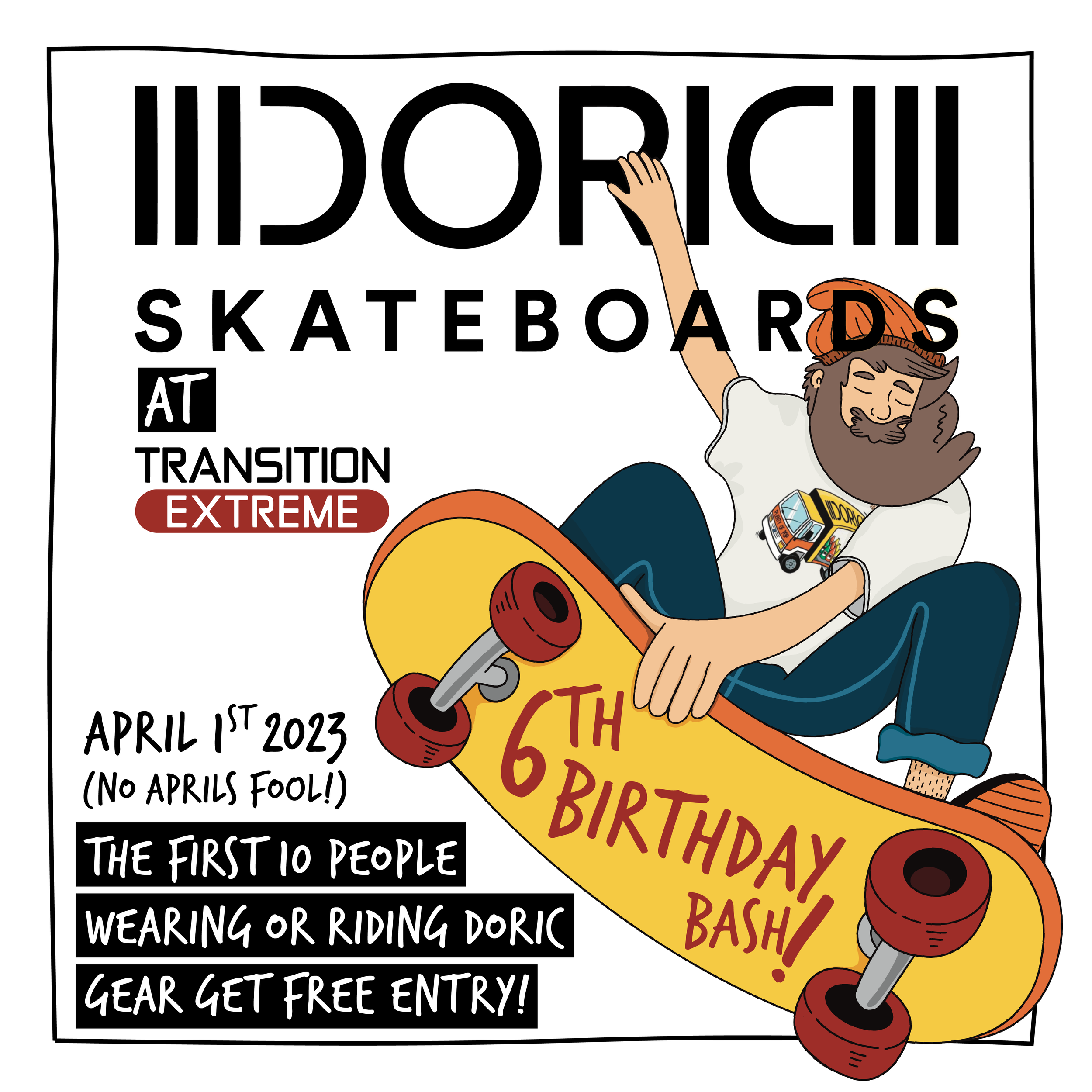 With the help of Transition Extreme Sports Ltd. we’re offering free entry to anyone wearing or riding Doric gear on the 1st April - no Aprils fool!