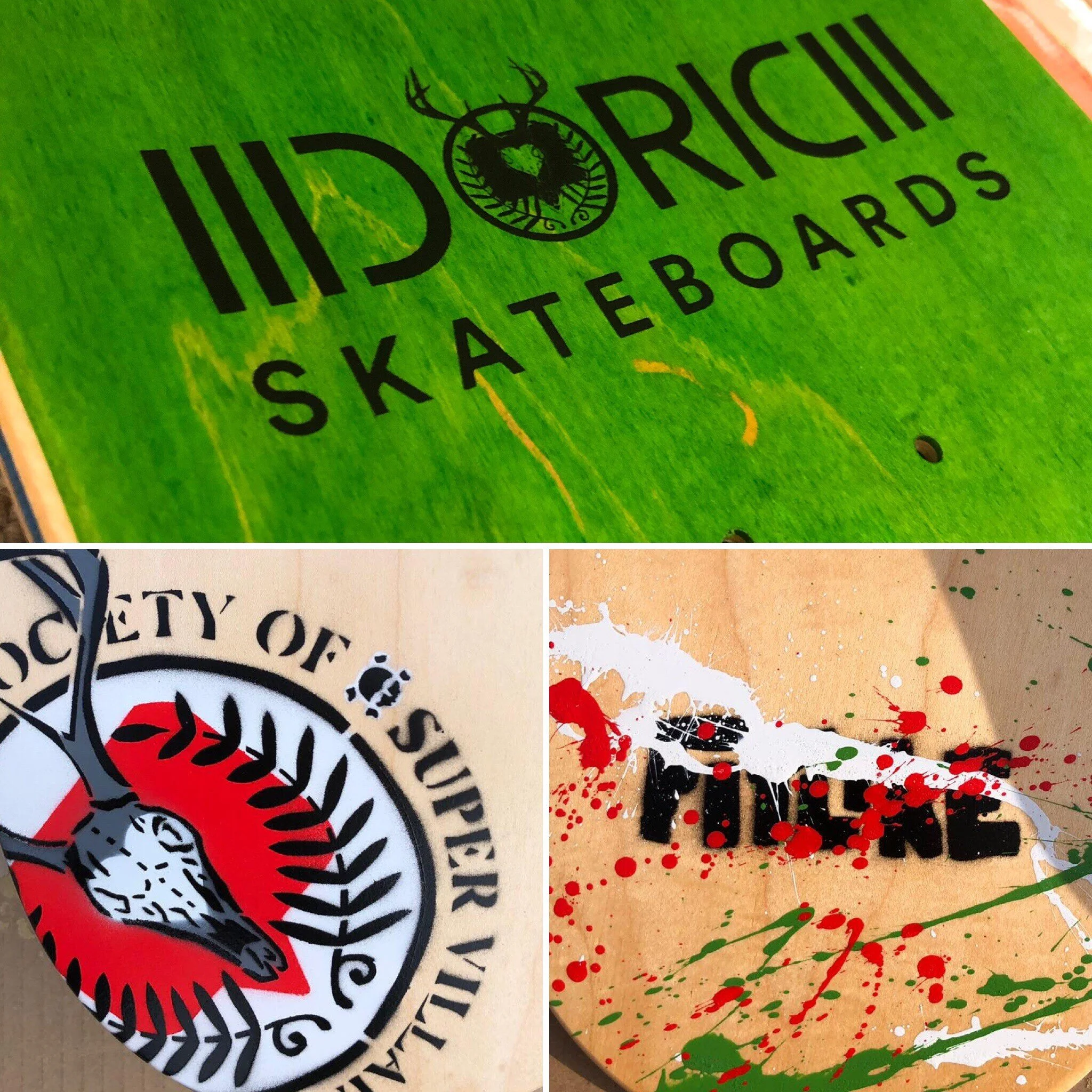 Decks - £45 - Hand stenciled by Fit Like and screen printed by Doric Skateboards.